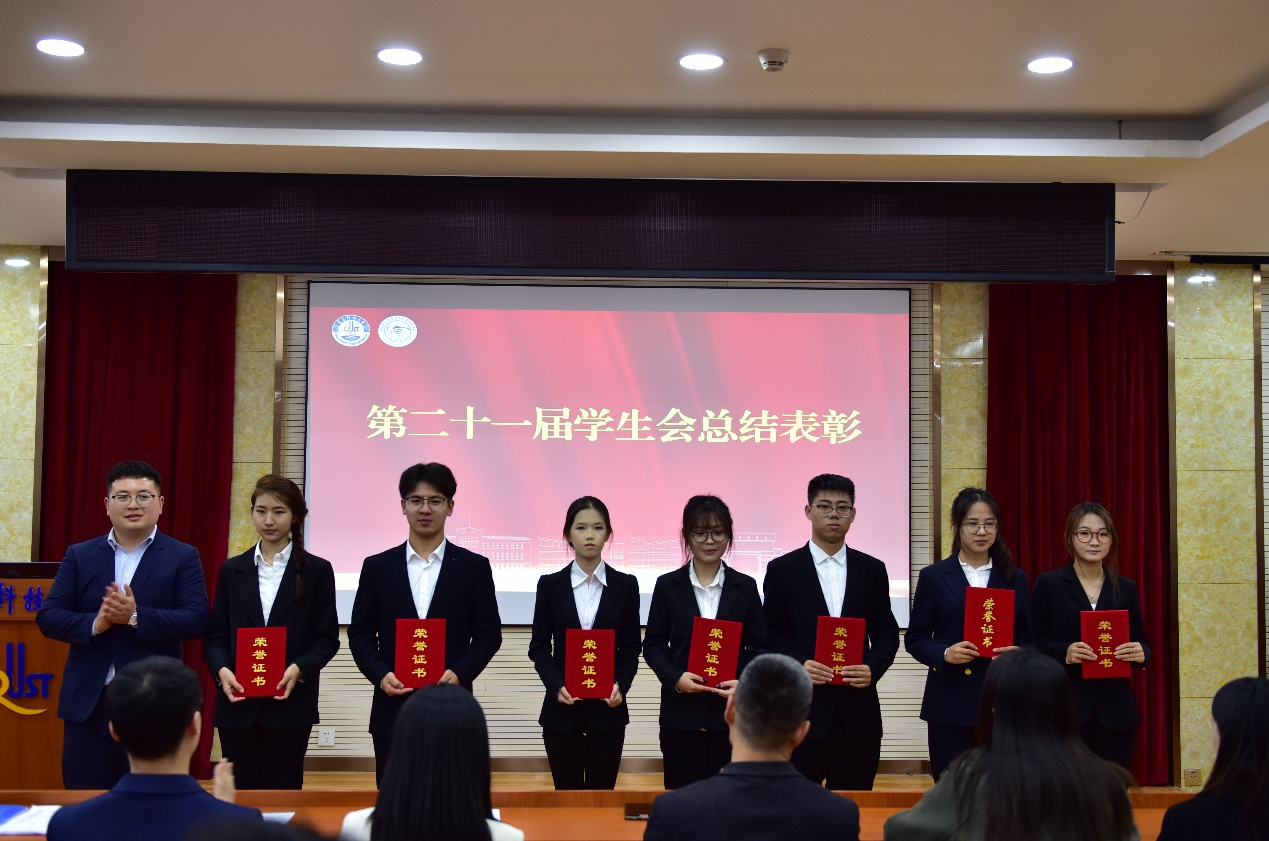 首先,学生会指导老师郝昱猛、研究生会指导老师屈会齐分别宣读了对第二十一届学生会、第五届研究生会的表彰决定,并为获得“优秀成员”和“优秀骨干”的同学颁发荣誉证书。